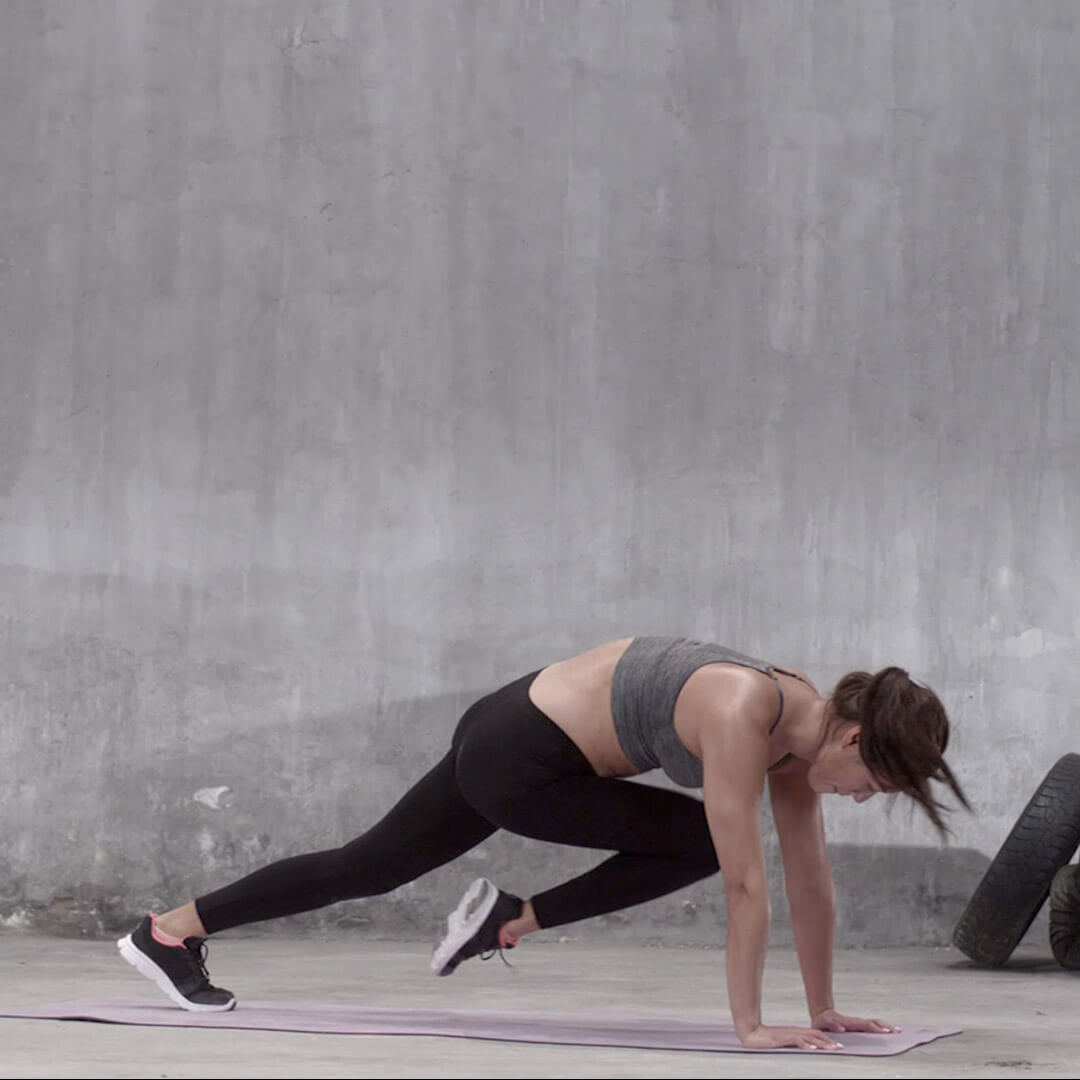 准备姿势:从俯卧撑姿势开始,身体呈一条直线