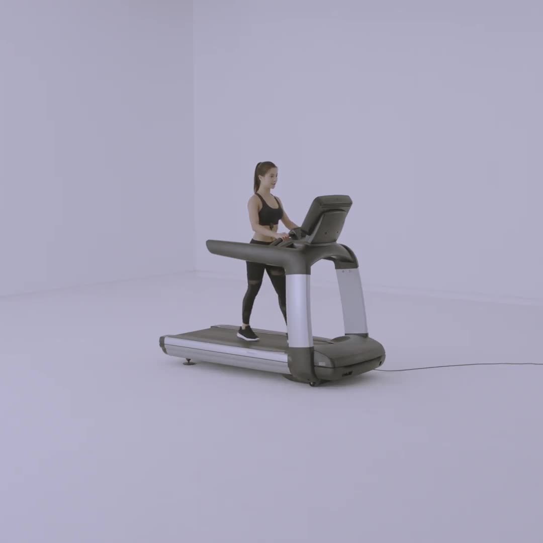眼睛平视正前方,身体不要晃动,双手扶住跑步机把手,需将安全夹夹在身上