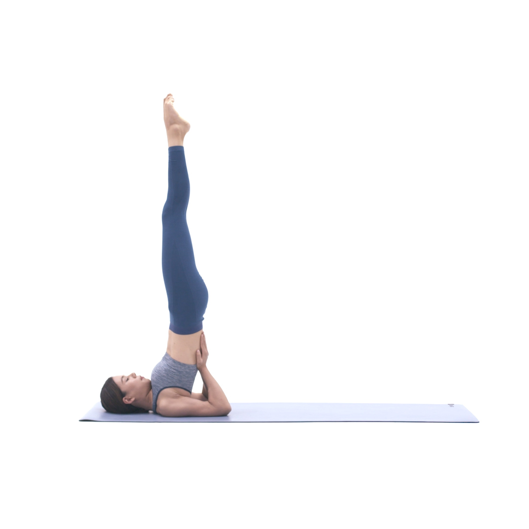 - ashtau 8 吸气,双腿向上抬离地面,将双手撑在后背处支撑,
