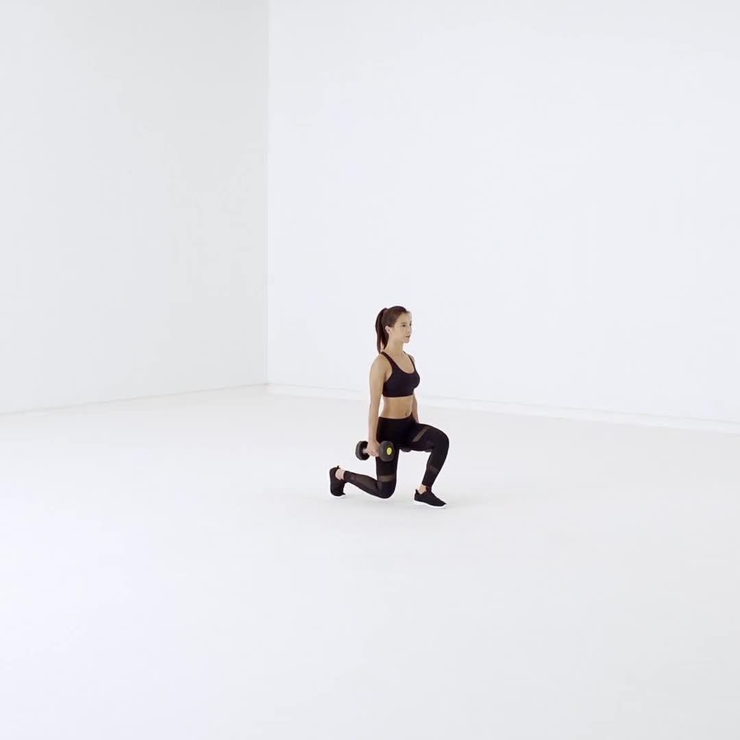 - 下蹲至前侧大腿与身体呈90°角,前侧大腿与小腿呈90°角,后侧大腿与小腿呈90°角;略作停顿,前侧腿发力站起回到起始位置