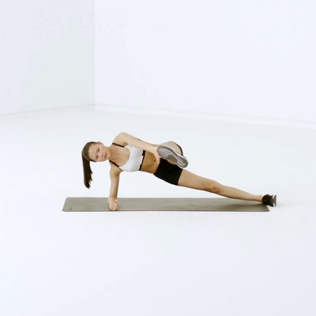 - 全程腹部收紧,耳、肩、髋、膝、踝呈一条直线