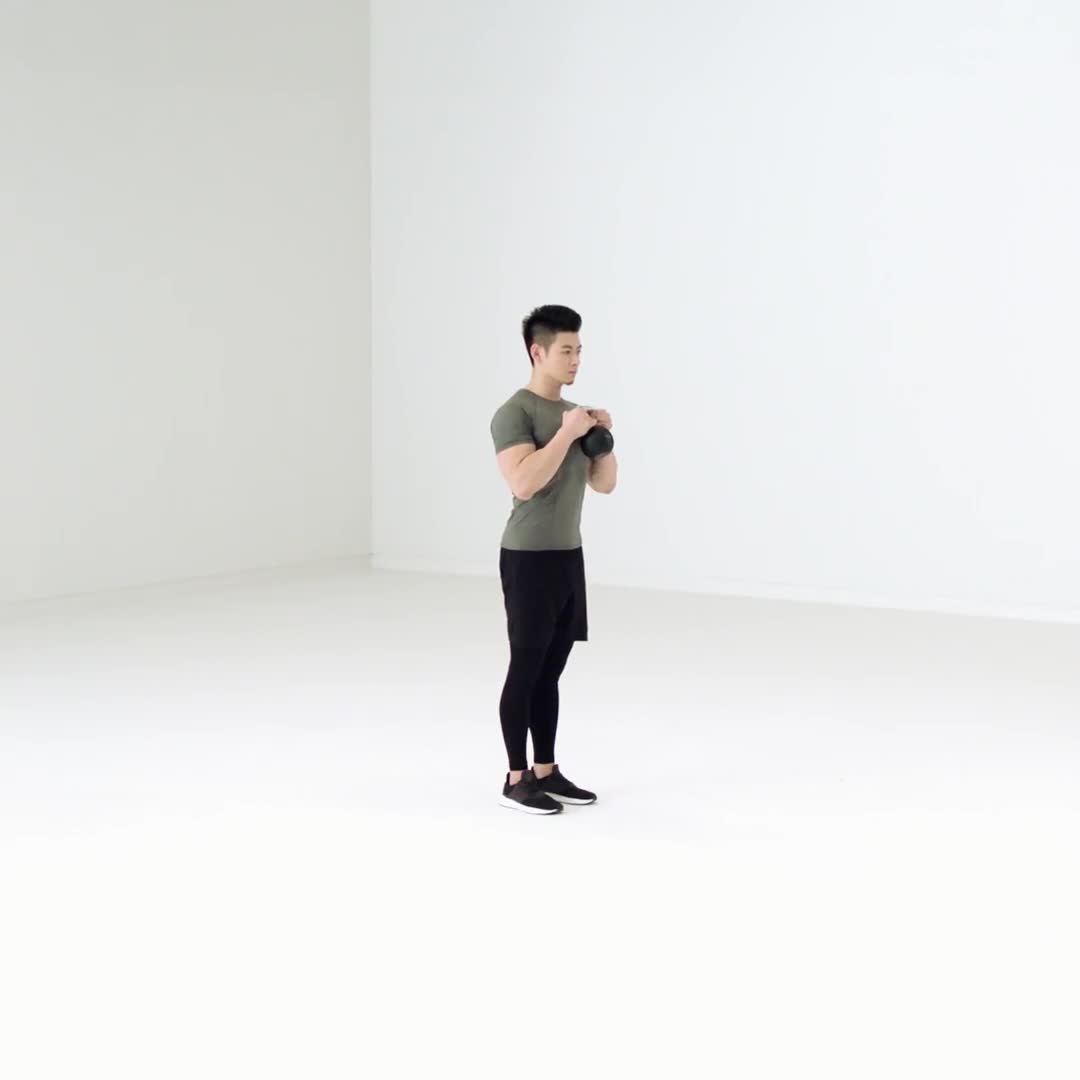 准备姿势:双脚与肩同宽站立,核心收紧,背部挺直,双肩下沉放松,头部正视前方。双手各握一只壶铃,采用锤式握姿(掌心相对身体两侧,拇指朝上),壶铃自然垂于体侧,肘部微屈不锁死,贴近身体保持固定。动作过程:吸气准备,肱二头肌、肱桡肌及前臂肌群协同发力,带动壶铃沿身体两侧缓慢向上弯举。弯举时肘部始终固定在体侧不移动,轨迹贴近躯干,直至壶铃上升至肩部下方(前臂垂直地面),顶峰保持 1 秒,感受手臂后侧与前臂的收缩张力。呼气时,缓慢控制壶铃沿原轨迹下放至初始位置,全程不借助身体摆动或耸肩助力,保持动作平稳可控。双侧可同时发力完成动作