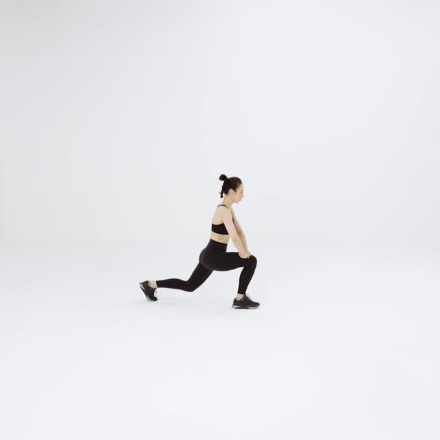 双腿交替向后撤步,做出下蹲,使膝关节与踝关节在同一垂线上,荷载要均匀分布在两条腿上;沉髋、屈膝下蹲至膝关节接近地面,在底部做四次小幅度脉冲然后原路返回。