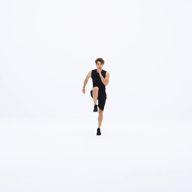 - 左右依次交替三向提膝,控制动作速度,上身保持稳定,支撑腿垫步保持弹动